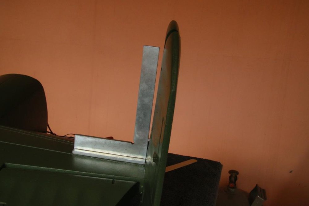 Nach langem in und her habe ich dann auch eine Welle gefunden die etwas schwer ging, dazu musste ich alles aus dem Fahrwerksschacht ausbauen, bis auf den eigentlichen Antrieb, den kann man so nicht ausbauen. Ok, alles wieder zusammengebaut und Fahrwerk rein-rausfahren, kopfliegend kein Problem. Aber der Antrieb hörte sich anders an. Das Modell in Fluglage gebracht und das gleiche Spiel wieder. Es funktioniert. Ich habe weitere 10 Mal probiert und das Fahrwerk fuhr einwandfrei. Für heute ist Schluss, morgen wird nochmal probiert ob alles geht und dann geht es ans ausbalancieren. Zu diesem Zweck habe ich mir eine Vorrichtung gebaut, denn es nicht einfach mal mit Finger unter die Fläche halten und hochheben. Meine Schwerpunktwaage wird mit den Flächen auf das Hauptteil gesteckt und anschließend auf die Vorrichtung gehoben.