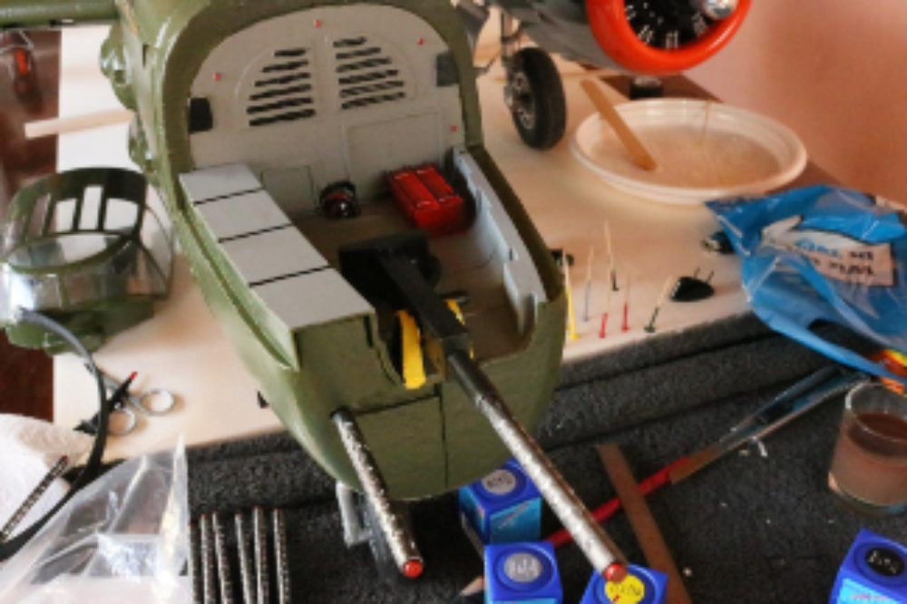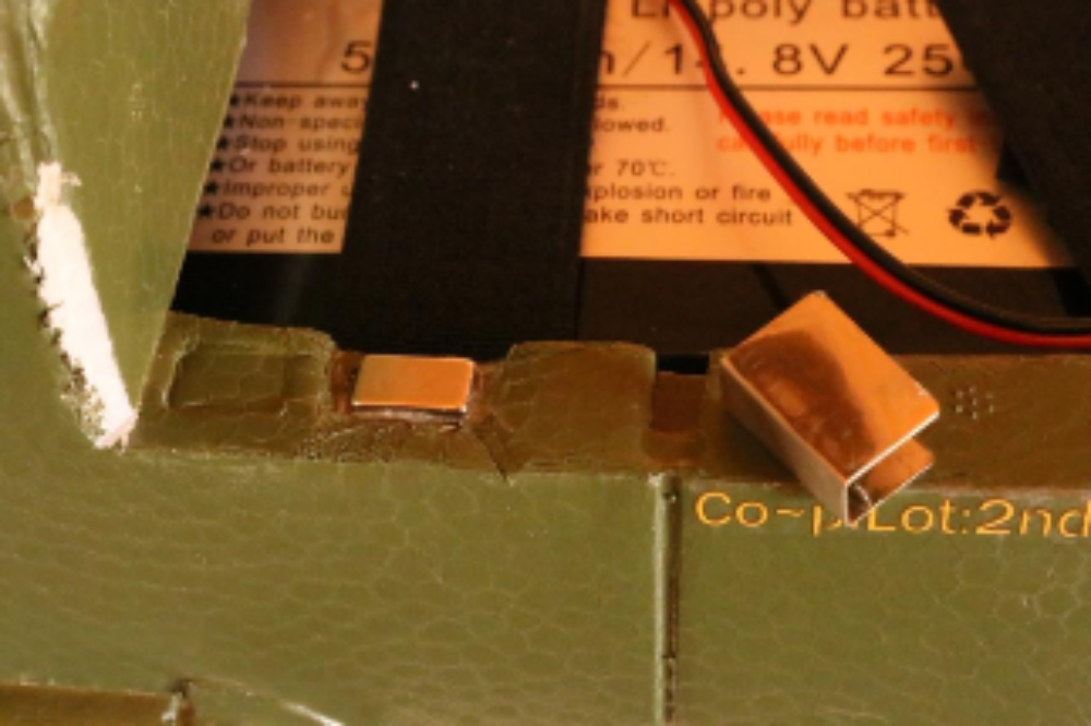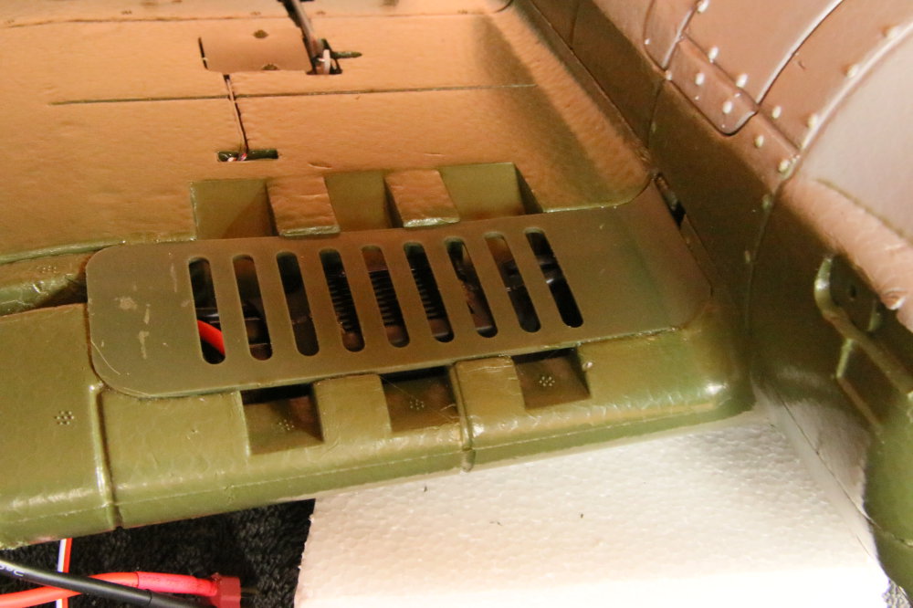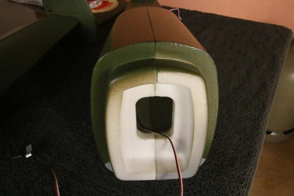 Im Falle von Reparaturen oder Wartungsarbeiten wurde die Luke in der Cowling nicht wie in der Anleitung beschrieben geklebt sondern mit Magneten versehen. So hat man jederzeit Zugang zu den Steckverbindern. Zusätzlich habe ich die Gestänge der Fahrwerksschächte in Antennrohr verpackt.