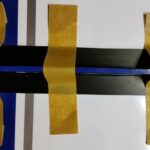 Die Montage des unteren Kiels ist Problemlos. Die Teile auf Passgenauigkeit prüfen, die Klebestellen links und rechts vom Kiel abkleben und den Kiel mit 30 min. Epoxid festkleben. Den Kiel auf den rechten Winkel zum Rumpf prüfen und mit Klebeband fixieren.
