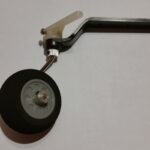 Das Rad auf die Radachse stecken und mit dem Ring sichern. Die Madenschraube wird mit Loctite gesichert. Das vorgefertigte Rad wird nun mit der Stange in die Aufnahme gesteckt. Für den Ruderhebel muss an der Stange nicht gefeilt werden. Eine entsprechende Nut ist vorhanden. Die Schraube vom Ruderhebel und die Madenschraube des Sicherungsrings werden auch wieder mit Loctite gesichert. Das Spornrad mit der Befestigungsschien auf den Rumpf auflegen und ausrichten und die Befestigunslöcher auf den Rumpf übertragen. Ich habe festgestellt, dass das Rad nicht im rechten Winkel zu Rumpf steht und hebe dementsprechend die Achse etwas nachgebogen. Die Löcher mit 1,5 mm Bohrer vorbohren. In die Bohrlöcher Sekundenkleber einträufeln und das Spornrad mit dem Rumpf verschrauben. Zuletzt wird die Anlenkstange mit dem Gewinde zuerst vom Rumpf kommend in das Plastikrohr geschoben und am Ausgang vorsichtig (vorher etwas aufschneiden) durchgestoßen. Den Kugelkopf mit 2 mm Bohrer aufbohren und auf das Gewinde aufschrauben und anschließend am Ruderhebel befestigen.