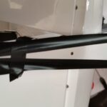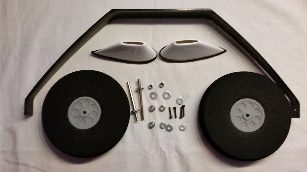 5. Montage Hauptfahrwerk Der schwarze Gummischlauch wird in der Mitte geteilt. Danach wird der Schlauch längs aufgeschnitten. Es ist darauf zu achten, dass der Schlauch nicht verdreht ist sonst gibt es Probleme beim Aufziehen und verkleben. Dann wird der aufgeschnittene Schlauch auf den Rand der Fahrwerksabdeckung aufgezogen und mit Sekundenkleber verklebt. Anschließend mittels beigeleter Schrauben das Fahrwerksbein am Rumpf befestigen.