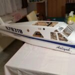 13. Montage Prop und Spinner Zu Abschluss wurden noch Spinner und Propeller montiert, die Seilzüge des Seitenleitwerks gespannt und Einstellarbeiten an den Servos für die entsprechenden Funktionen durchgeführt. Alles in Allem wurde das Modell in ca. 50 Stunden flugfertig montiert. Bei der Montage gab es keine Probleme und die Passgenauigkeit der Teile war zufriedenstellend.