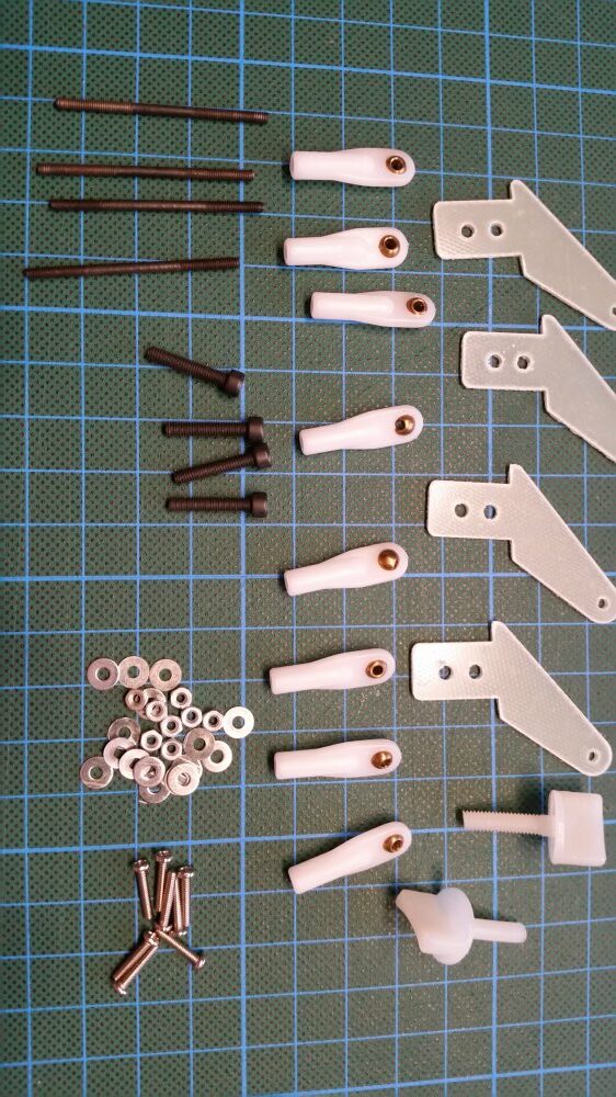 Das nächste Ärgernis, waren die Bohrungen der Gelenkkugelköpfe. Die musste ich erst mit einem 2 mm Bohrer aufbohren sonst wären die Gewindestangen nicht so einfach zum einschrauben gewesen.