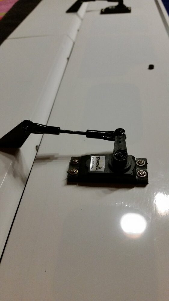 3. Montage der Servos Für die Montage der Servos ist folgendes zu beachten. Die Servos sind mit dem Servoschaft in Richtung Nasenleiste zu verbauen Die Ruderarme sollen alle die gleiche Länge haben und sollen parallel zu den Querrudern und Flaps stehen Für die Querruder habe ich 30 cm Servoverlängerungen verbaut, die mit Sicherungsclipsen versehen wurden. Die Gelenkkugelköpfe werden auf die Gewindestangen gedreht.