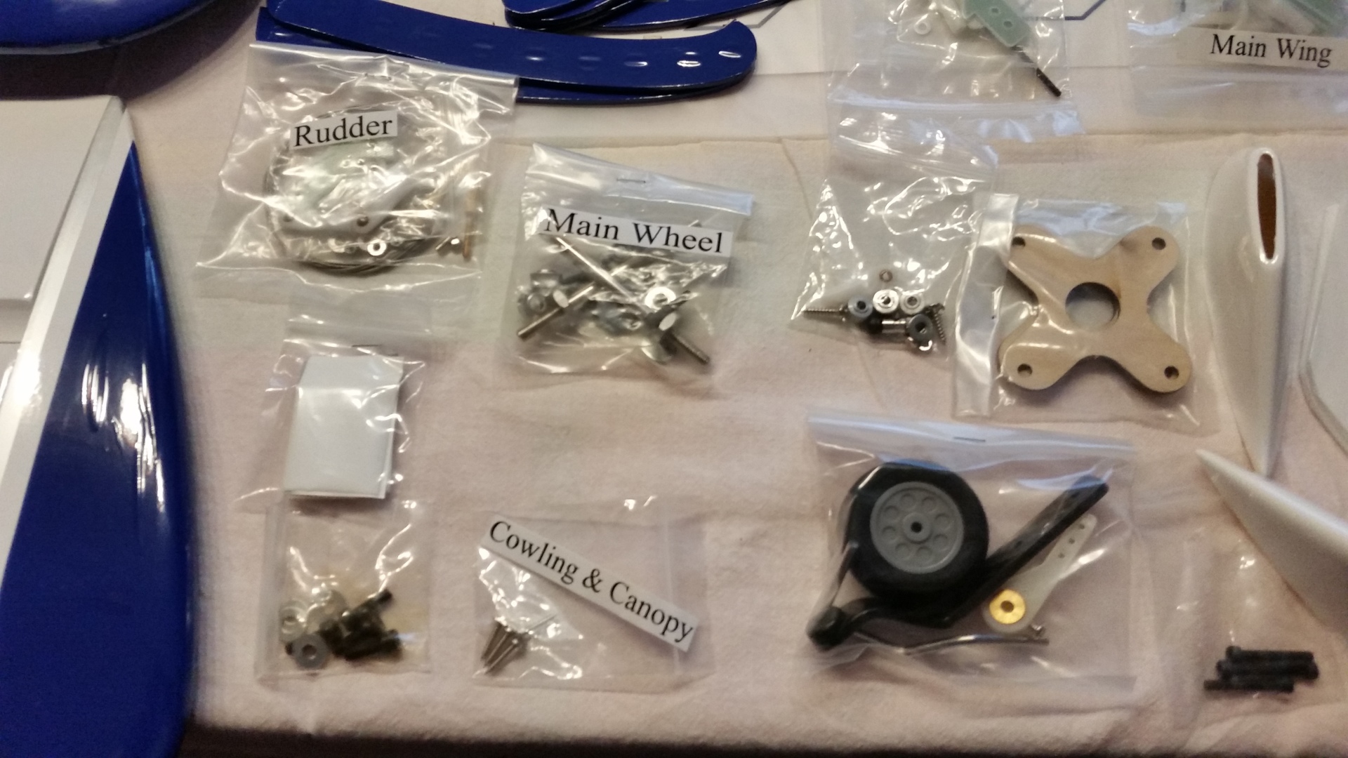 Nachdem dies erfolgt ist kann der Zusammenbau beginnen. Was mich gleich zu Anfang gleich genervt hat, ist die Tatsache das beim Abziehen der kleinen Klebestreifen, welche die Landeklappen und Querruder zum Transport an Ort und Stelle halten, gleich die Folie teilweise mit abgelöst hat.