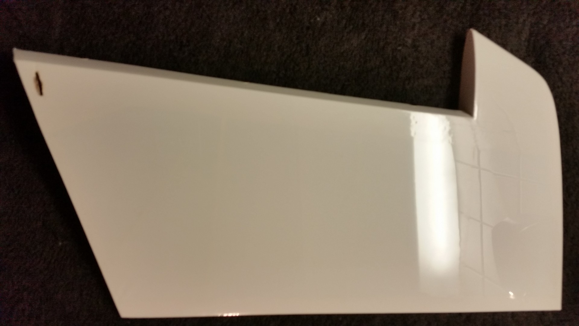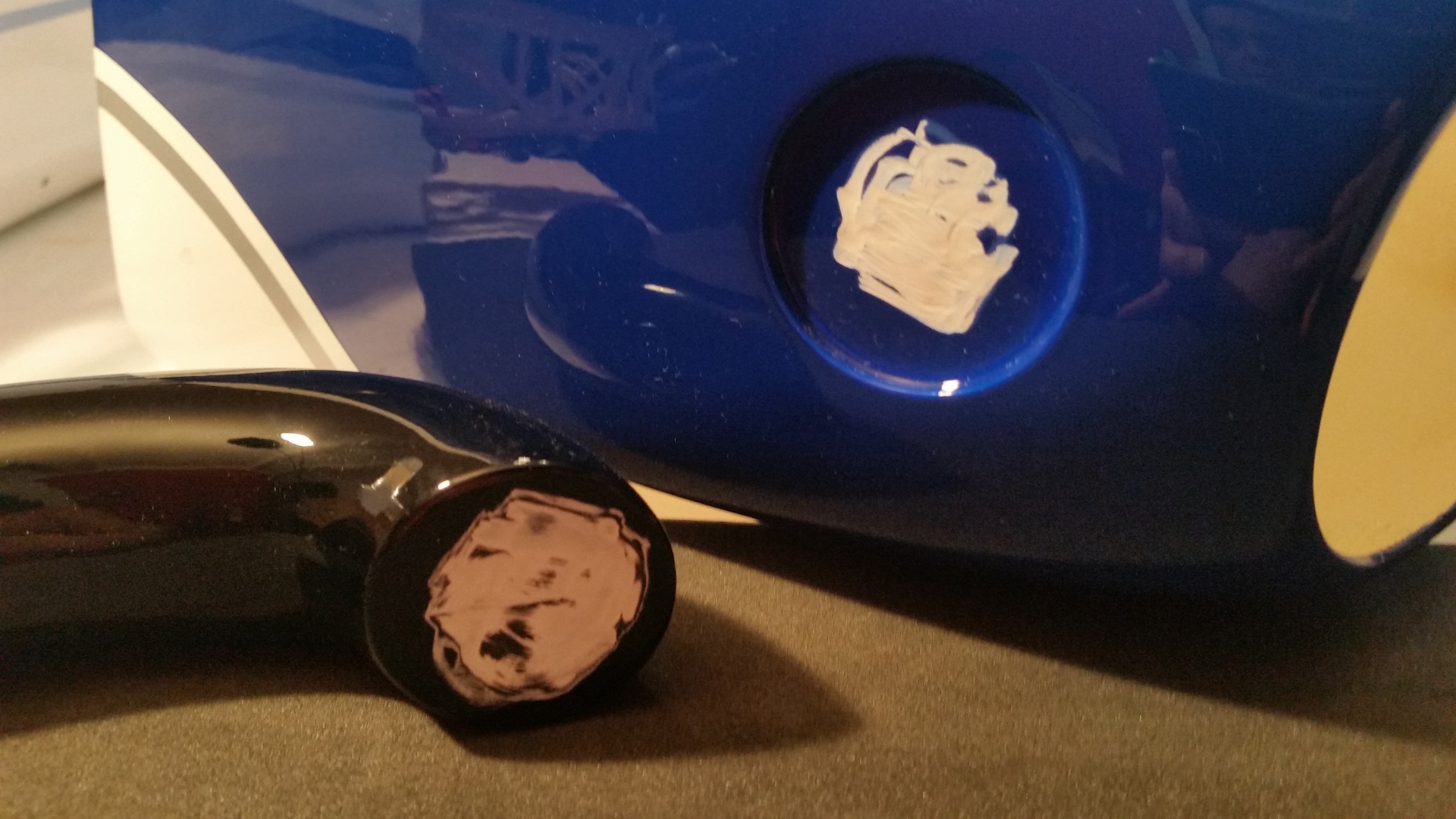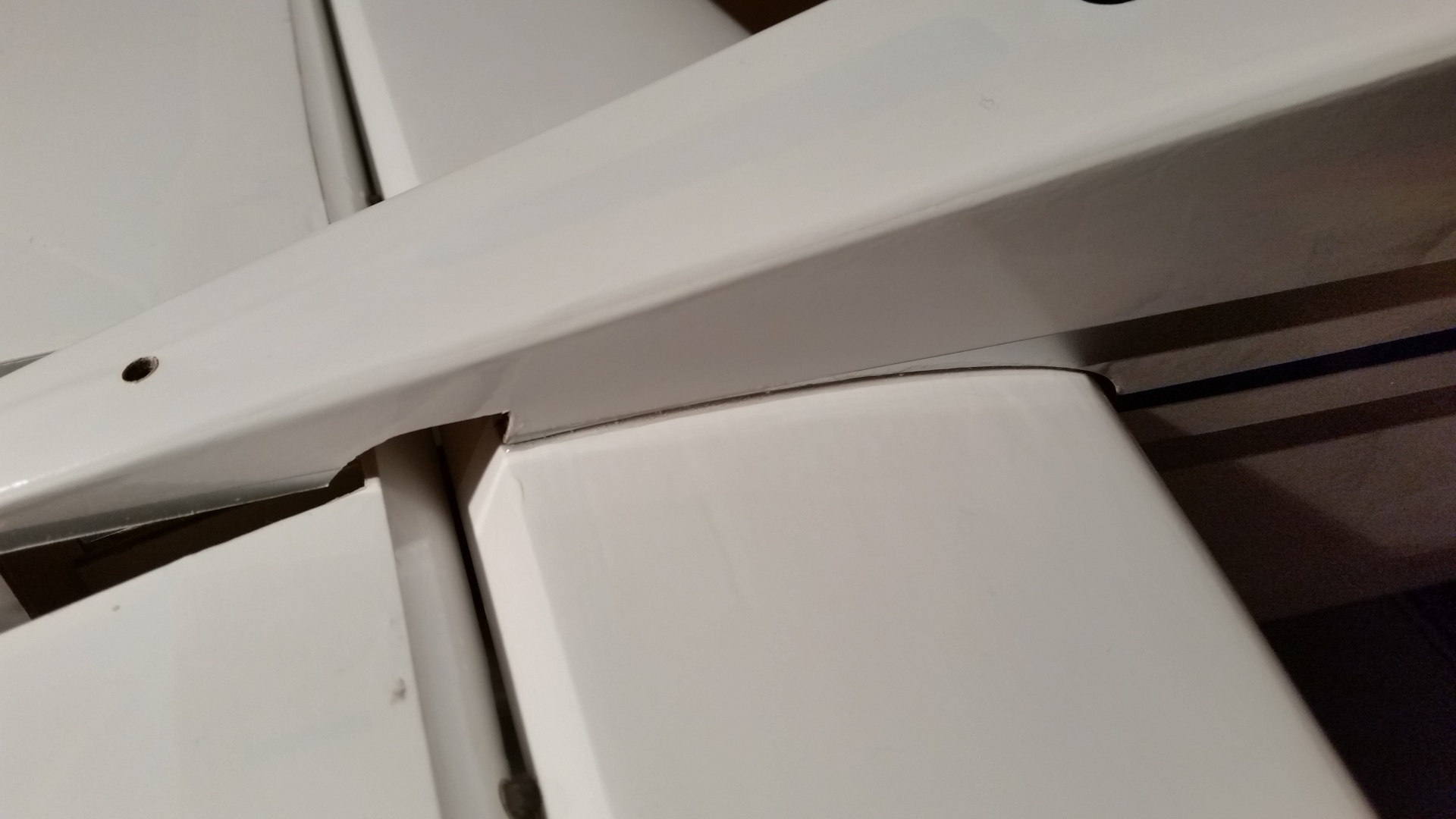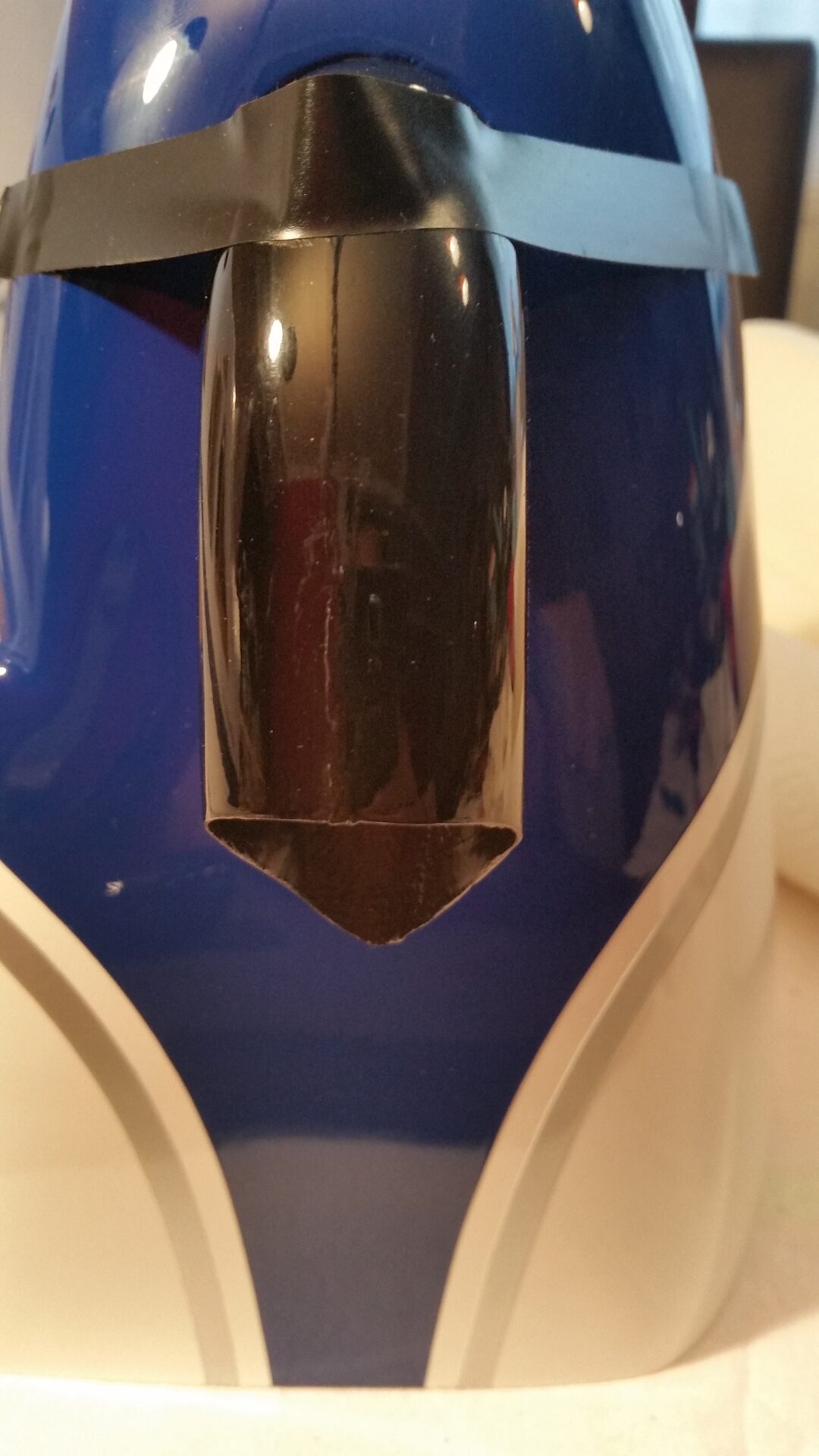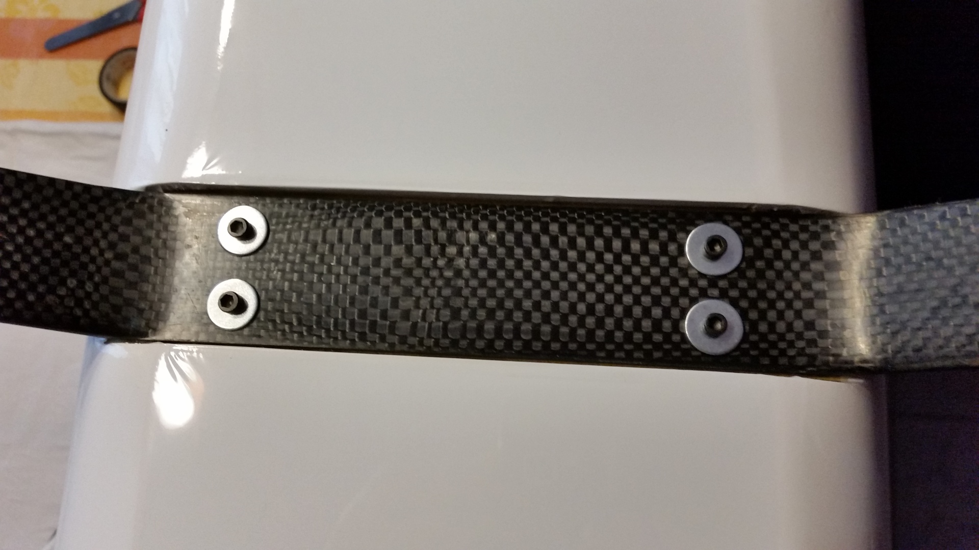 Als erstes wird Windschutzscheibe ungeschnitten auf den Rumpf gesetzt und auf die Lage der Scheibe geachtet. Es war ausreichend Überstand vorhanden und so erfolgte der erste Schnitt oberhalb am Dach. Gerade so viel, dass noch genug überstand, um im Finish noch etwas abschneiden zu können. Die nächsten Schnitte erfolgte an den Seiten und am Rumpf vorne, aber immer nur so viel, dass noch eine gewisse Sicherheit vorhanden ist. Dann wurde die Scheibe wieder aufgesetzt und die Passgenauigkeit geprüft. Dabei sind mir die unlackierten Holme aufgefallen. Das wurde entsprechend geändert indem ich die Holme mit weißer Farbe gestrichen habe. Für die Montage der Windschutzscheibe entschied ich mich nicht für Klebstoff, sondern für die geschraubte Variante. Als Schrauben wurden selbstschneidende Inbusschrauben 2,5×8 mm in Schwarz benutzt. Die grob geschnittene Scheibe wird passend auf den Rumpf gesetzt und mit Klebeband fixiert. Anschließend werden die Löcher für die Schrauben markiert und mit einem 1,5 mm gebohrt. Danach werden die Kanten der Scheibe nochmals geschnitten, so dass von dem Bohrloch noch ca. 3 mm Material stehen blieb. Die Scheibe wurde nicht montiert, sondern zur Seite gelegt um zunächst erst die noch folgenden Arbeitsschritte zu tätigen. So hat man mehr Platz um im Innerraum noch Arbeiten zu verrichten.