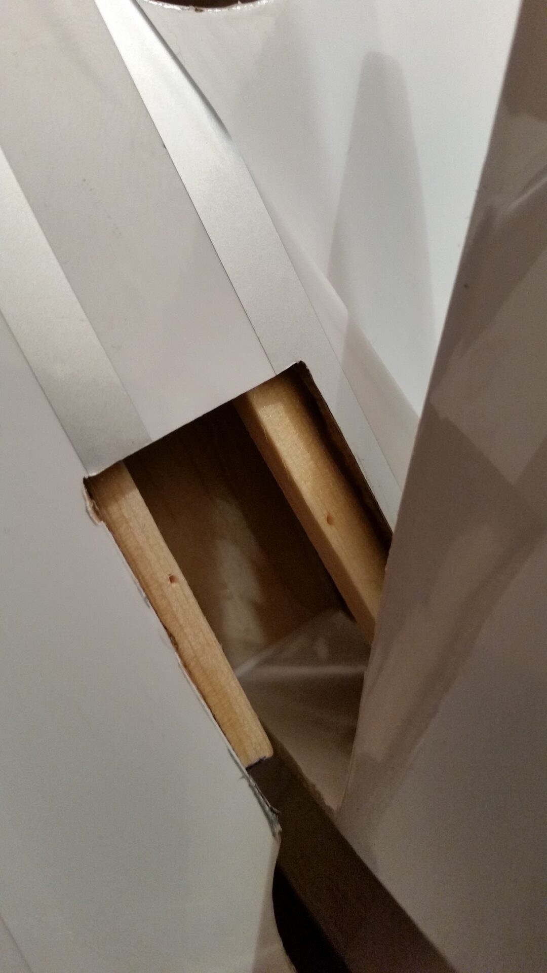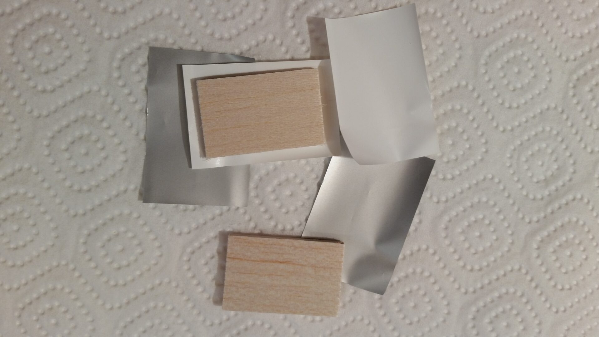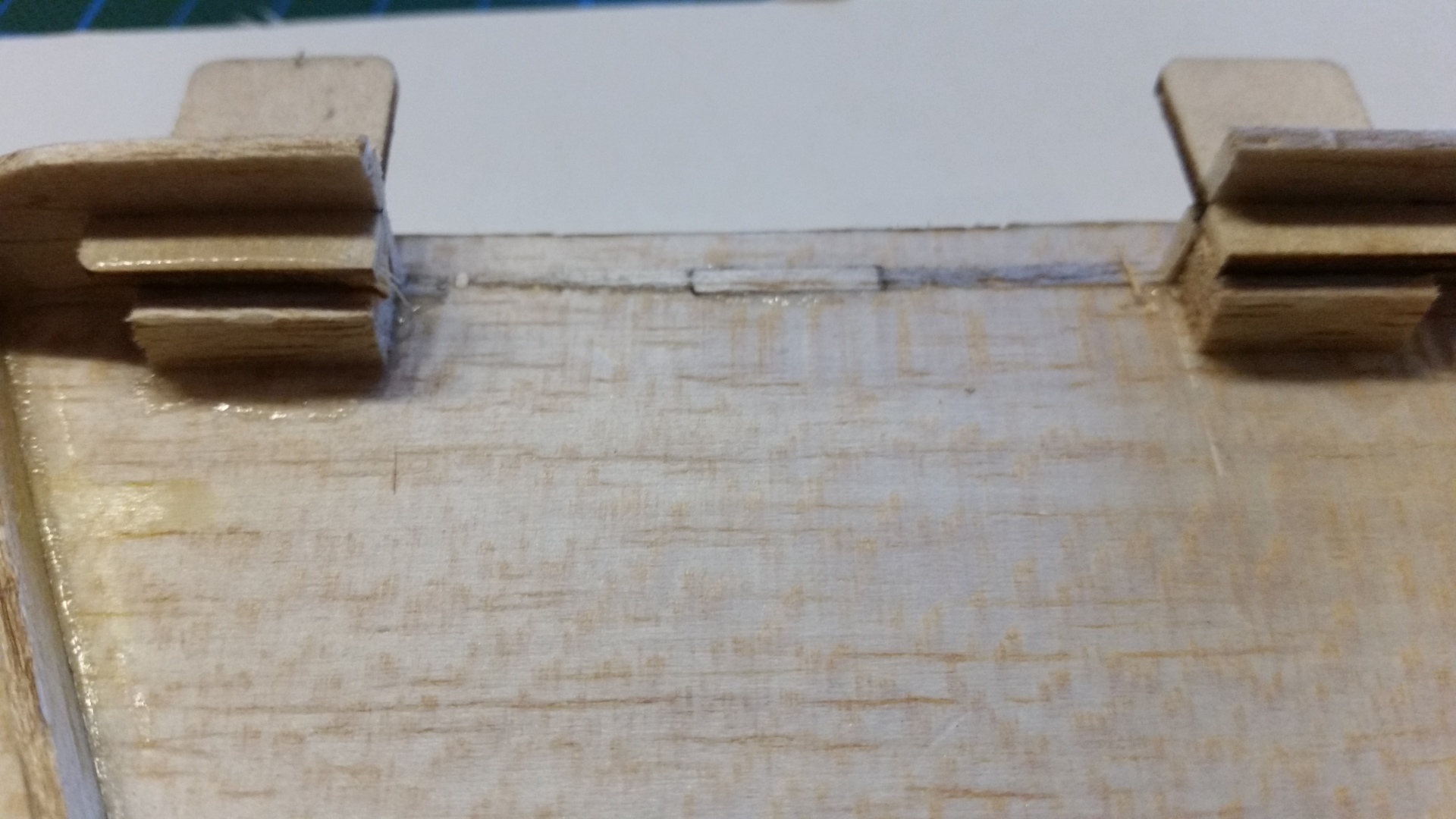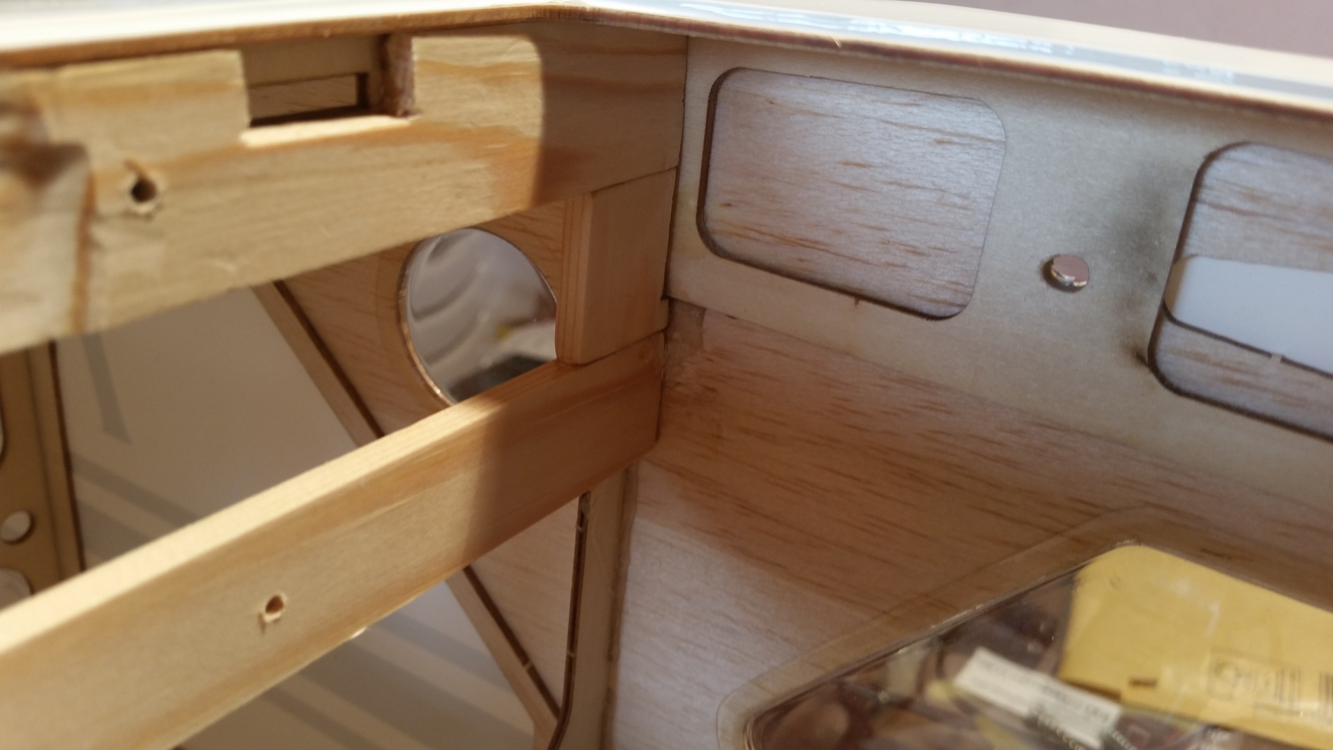 Bevor der bewegliche Teil des Höhenleitwerkes montiert wird, ist die Folie auf die kleinen Holzplättchen zu bügeln. Diese sind dafür da um die große Öffnungen am Heck zu schließen. Damit die Abdeckungen beim Kleben nicht in den Rumpf fallen habe ich vor kleine Balsastreifen als auf Auflage in die Öffnungen eingeklebt.